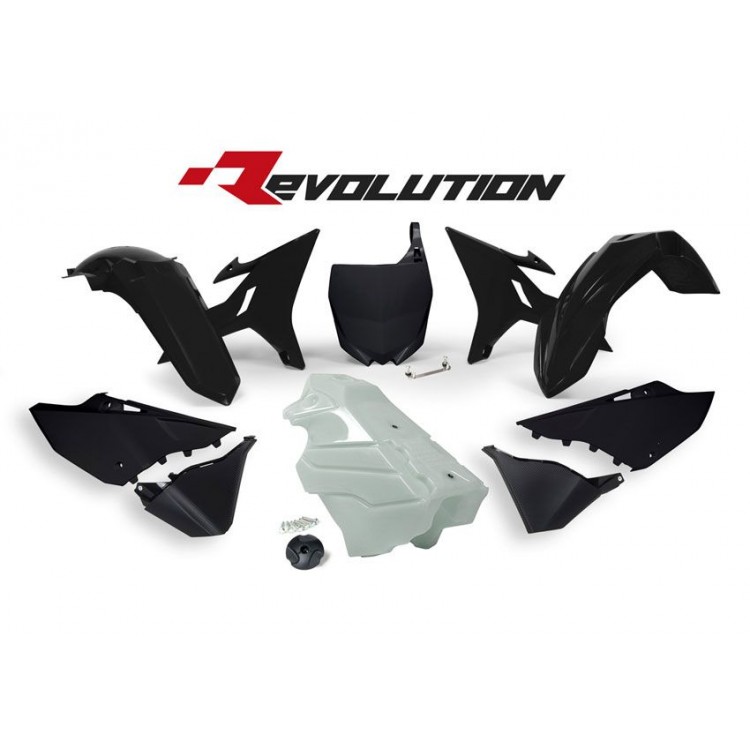KIT PLASTICOS RTECH REVOLUTION YAMAHA YZ 125 / 250 2002 - 2017 PRETO C/ DEPOSITO TRANSPARENTE